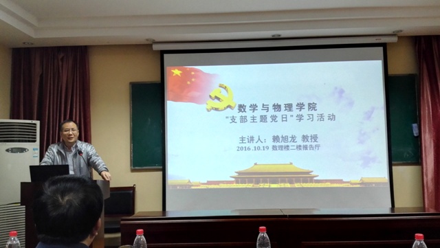 10月19日下午4点,数学与物理学院“支部主题党日”学习活动在基础楼二楼报告厅圆满举行。学院全体师生党员参加此次活动,学习活动由学院党委书记李宇凯主持。