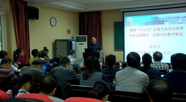学校党委常委、副校长赖旭龙教授作题为“党的 ‘十八大’以来习总书记和党中央治国理念、治国方针数字解读”的报告。赖校长从“两学一做”的背景及意义出发,以八个数字为主线,用数字化的方式系统解读了党的“十八大”以来习总书记关于治国理政方方面面的内容。赖校长最后强调学院师生党员要加强党性修养,发扬长征精神,按照“四讲四有”的要求做合格党员,充分发挥先锋模范作用,为全面提升91网 办学实力和办学水平而努力奋斗。