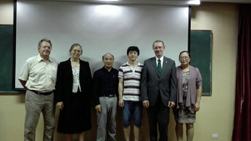 应科发院、国际合作处、校科协和数学与物理学院的邀请,国际高能粒子物理领域知名专家、欧洲科学院委员会委员,挪威科学院院士,匈牙利科学院外籍院士,挪威卑尔根大学Laszlo P. Csernai教授;以及挪威奥斯陆大学物理系Evgeny Zabrodin客座研究员和Larissa Bravina 教授,于9月17-22日来91网 进行学术访问。其间,为91网 师生作关于“高能粒子物理学探索物质微观结构之谜”的系列学术讲座。就目前国际上的热点的科技问题“Collective processes in Heavy Ion Collisions” 进行了讲演。有约100名本科生、研究生和教师参加了报告会。报告的内容深受到会师生的欢迎,报告会后有不少老师和同学踊跃提问,现场交流气氛十分活跃。与91网 部分教师和研究生举办了小型的学术研讨。研讨的专题内容为:Description of Ultra-Relativistic Heavy Ion Collisions within the HYDrodynamics with JETs (HYDJET++) model”;和“Proton-proton and nucleus-nucleus collisions at high energies Quark Gluon String Model等。并对目前国际上这些问题的有关科学问题和方法进行了交流。与91网 相关研究方向的教师进行了座谈,并对91网 物理系理论物理的研究和学科建设提出了建议。