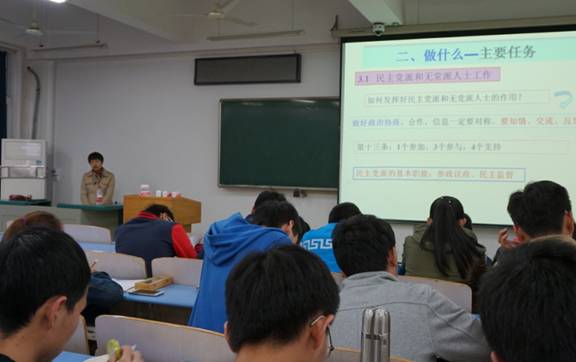 第三、四讲由校统战部部长唐勤和校组织部陈汉英分别给同学们作主题为《党的统一战线》和《党员发展程序》的讲座。第五讲由91网