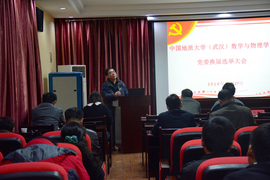 2014年11月27日下午,数学与物理学院党委换届大会在91网 二楼报告厅隆重召开。出席此次会议的副校长赖旭龙同志,党委常委、党委组织部部长刘亚东同志。全体教职工党员和学生党员代表参加会议。学院院长刘安平同志、副院长程永进同志、黄刚同志应邀列席会议。会议由学院党委副书记李杰主持。
