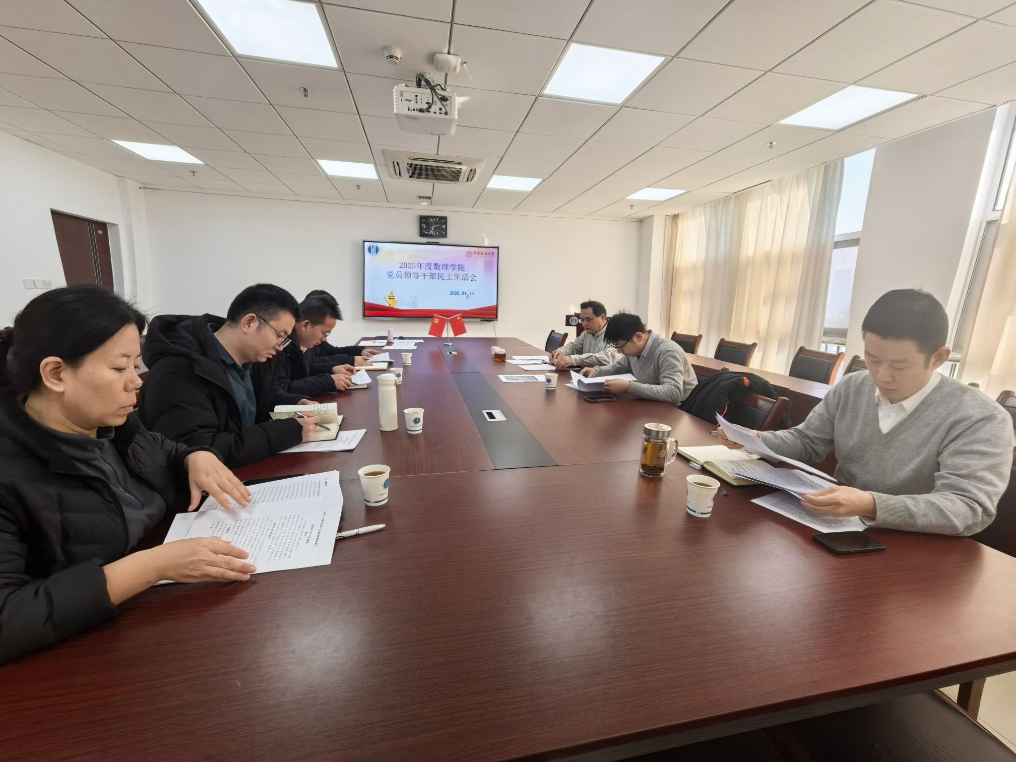 1月15日下午,数学与物理学院2025年度党员领导干部民主生活会在东区教学综合楼A1505召开。学院领导班子全体成员参加会议,院工会主席列席会议。会议由院党委书记张基得主持。