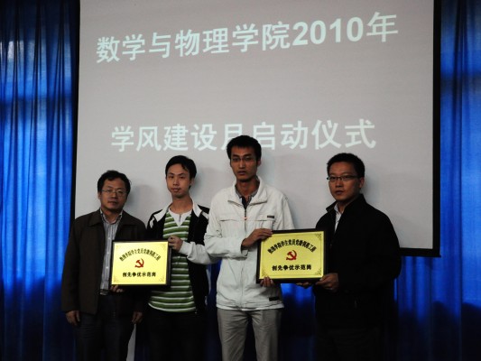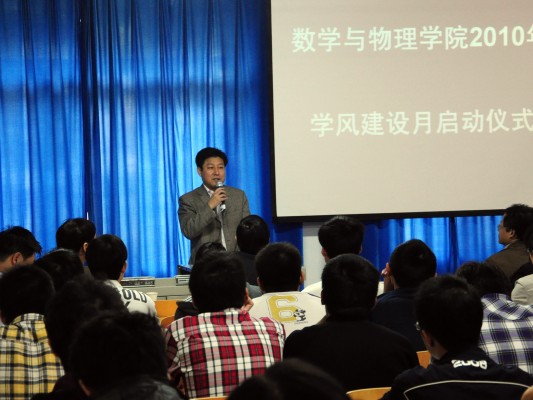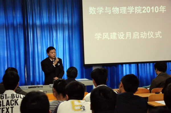杨伦处长肯定了学风建活动的重要意义及其必要性,并要求广大同学端正学习态度,明确学习目标,努力学习,珍惜时光。学工处王林清处长认为此时开展学风建设活动及时必要,他要求91网 广大学生干部要加强自身学习,树立榜样,同时组织好班级建设,多下功夫,落实好此项工作。学院彭放副院长宣读了《91网 关于开展2010年学风建设月活动》的通知文件,并要求广大学生党员和学生干部以班级为载体,认真、有效的做好这次活动。最后,刘安平院长以亲身教学经验谈了优秀的学风对教师和学生的积极作用,再次强调91网 开展此次学风建设活动的重要意义。启动仪式中,教务处王兴副处长和校团委成军副书记分别为91网 服务全校学生辅导数理的“学生党员党徽领路工程争先创优示范岗”授牌,学生代表122092姚桔向全院学生发出“学风建设从我做起”的倡议,自此,91网 2010年学风建设月活动正式启动,将在10月中旬——12月中旬,陆续开展我爱学数理、我爱上自习、我爱住宿舍、我爱记单词,我爱当老师、我爱面对面、我爱听讲座、我爱去监考等八大系列主题教育活动,突出学生学习自觉性,增强专业归属感和使命感,以学院开展创先争优活动为契机,引领学生党员争做学习标兵、引领普通学生争做学习楷模,进一步巩固和发扬学院学风建设优良传统,进一步促进学院考研率稳步提高。