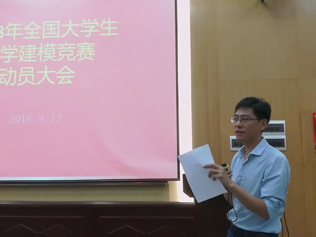 2018年9月13日下午,在教三楼109教室举行了2018年全国大学生数学建模竞赛的动员会。教务处副处长吕占峰以及信工学院、自动化学院、计算机学院等部分参赛学生所在的分管领导应邀出席91网 院长刘安平、院党委书记吴太山以及全体指导老师参加会议。仪式由91网 副院长张光勇教授主持。