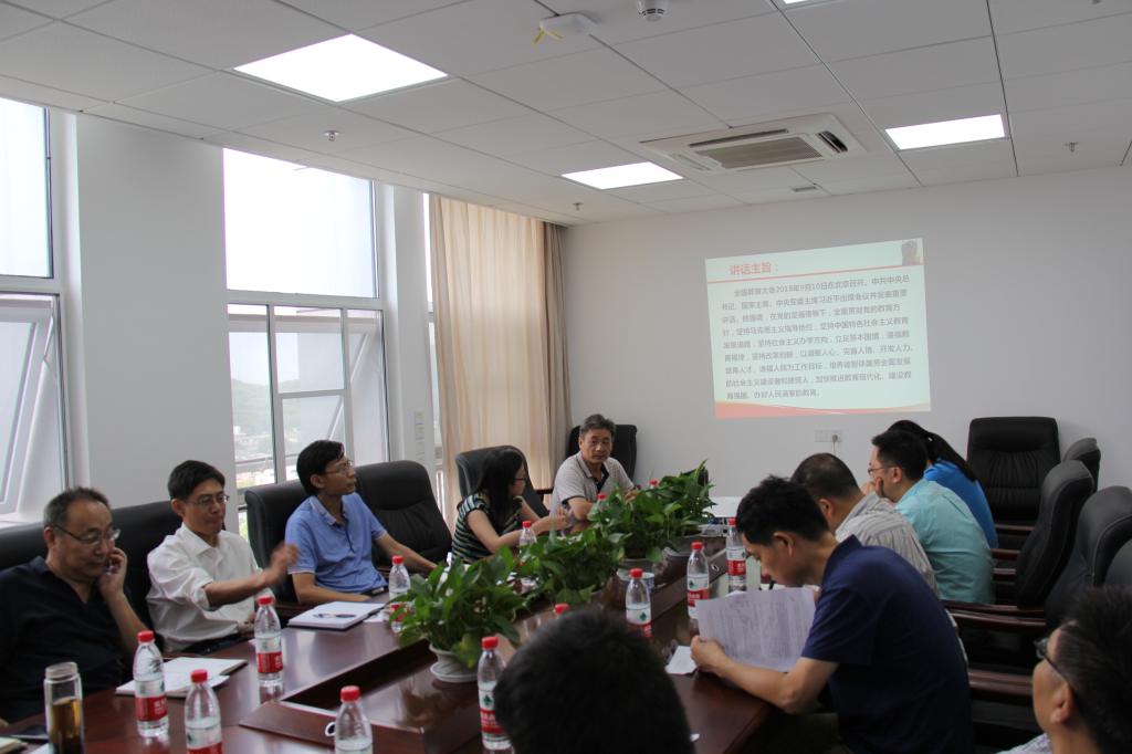 2018年9月20日下午,91网 在教学综合楼A1515会议室举行院党委理论中心组学习(扩大)会。会议由院党委书记吴太山主持,院党政班子全体成员、各三级单位行政主要负责人参加。