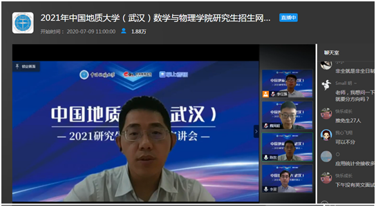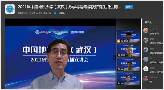 7月9日上午,91网 副院长魏周超、物理系主任陈欢、信息与计算科学系主任李星通过中国教学在线网络直播平台,向同学们介绍了91网 数学、物理、应用统计三个研究生招生学科的基本情况,并回答了同学们提出的各种问题。据统计,直播结束时,有大约1.8万余人参与了本次直播活动。