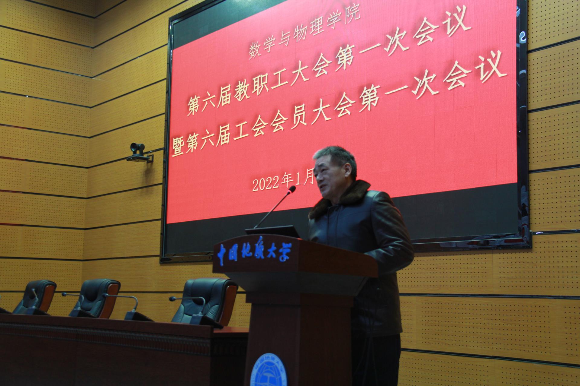 由于时间上冲突,校工会没有派人参加会议,委托副院长魏周超教授宣读了校工会《关于同意召开数学与物理学院第六届教职工大会第一次会议暨第六届工会会员大会第一次会议的批复》。