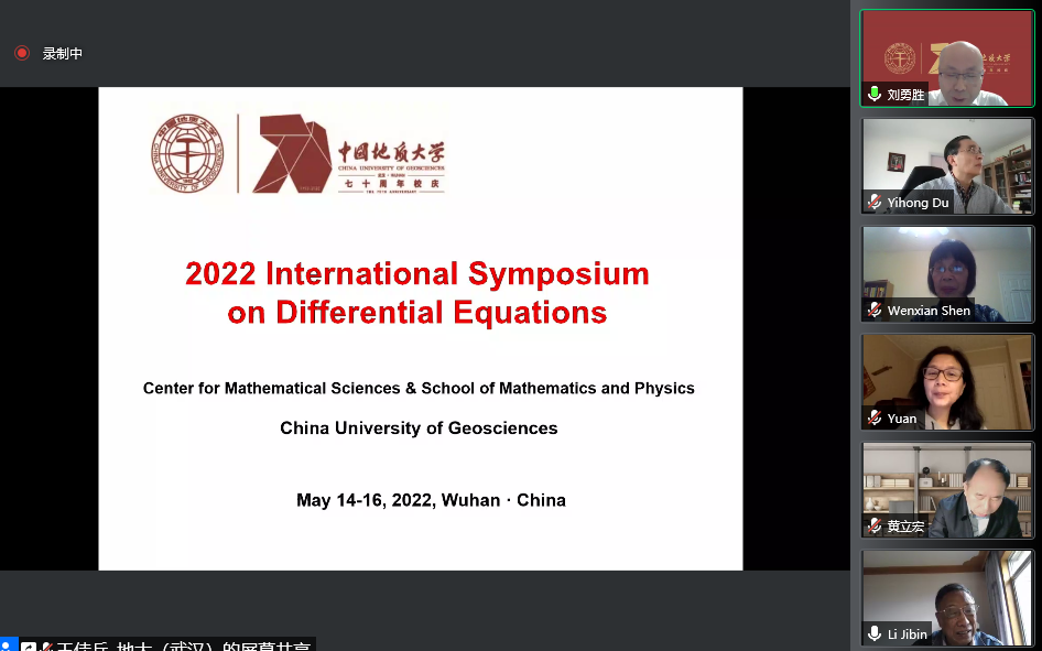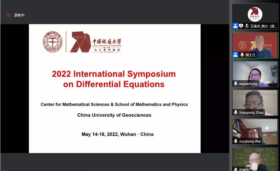 2022年5月14日至15日,91网 (武汉)主办的“2022年微分方程国际研讨会(2022 International Symposium on Differential Equations)”在腾讯会议线上举行。此次国际会议是91网 (武汉)70周年校庆的系列学术活动之一,以展示和介绍国内外微分方程定性与稳定性理论及应用的最新研究成果和进展为出发点,以加强国内外微分方程及相关领域的学术交流与合作为目的。大会开幕式由91网 (武汉)数学与物理学院院长郭上江教授主持,91网 (武汉)副校长刘勇胜教授以及加拿大应用数学首席教授(Canada Research Chair)、加拿大首席资深工业与应用数学主席、加拿大应用与工业数学会会长、加拿大约克大学疾病建模中心创始主任,危机与灾难模拟快速反应项目创始主任吴建宏教授分别致辞。