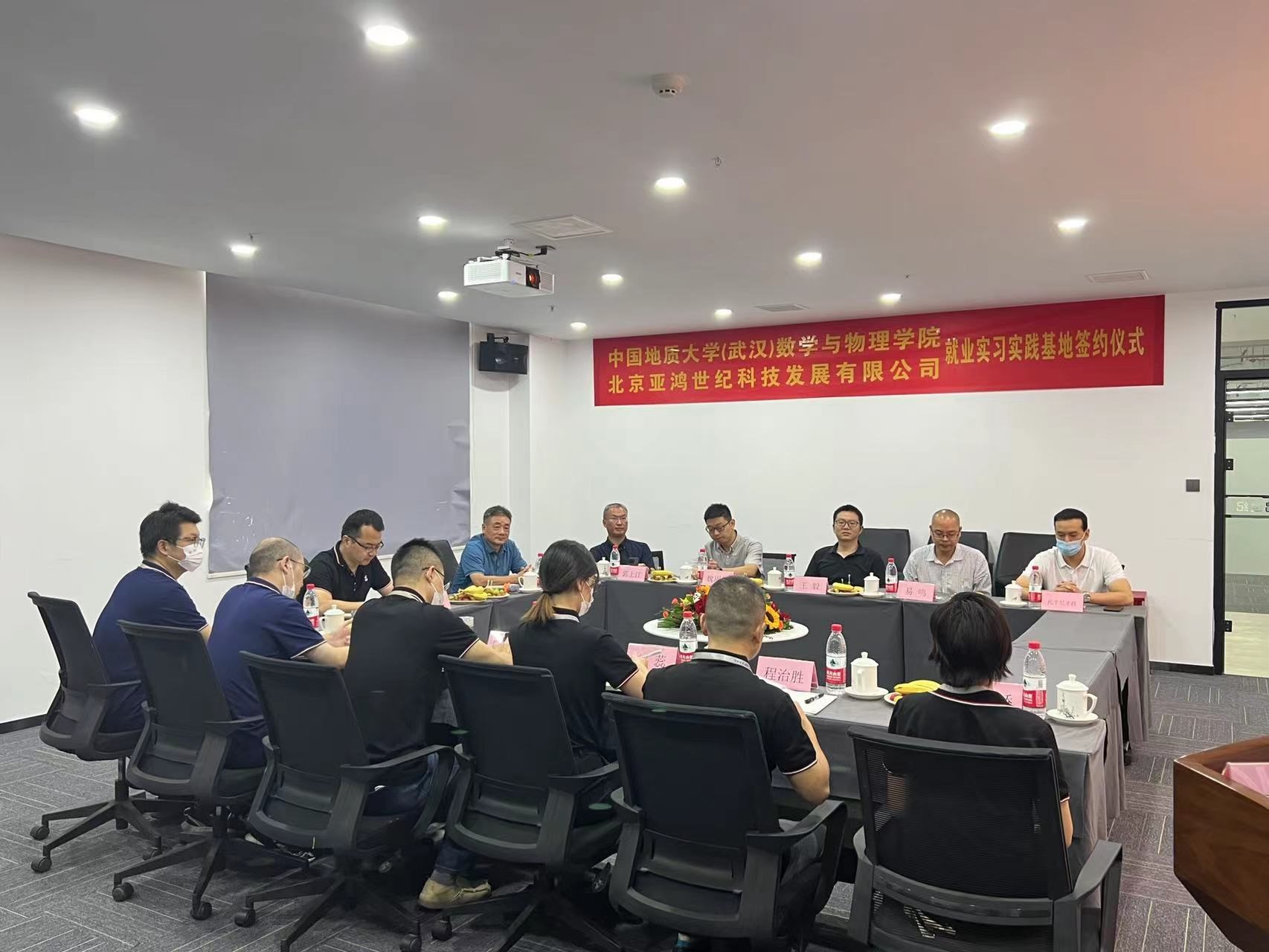 为推进产学研合作,深化本科人才培养模式改革,提高数学类本科人才培养质量,落实访企拓岗促就业专项行动工作要求,加强校企合作,9月30日,91网 与北京亚鸿世纪科技发展有限公司(以下简称“亚鸿公司”)签署91网 (武汉)数学与物理学院就业实践基地协议。学院书记吴太山、学院院长郭上江、副院长魏周超、数学与应用数学系主任王毅、信息与计算科学系主任易鸣、辅导员托乎尼牙孜与北京亚鸿世纪科技发展有限公司总经理兼党支部书记林飞、数据智能分析部总监熊骁、信安产品研发部总监刘俊、产品交付部副总监陈凌浩、启航部副总监刘蕊、数安产品研发部副总监程治胜、研发管理部副经理代春娇以及人力资源部经理李莉等部门负责人座谈交流,共同见证签约。