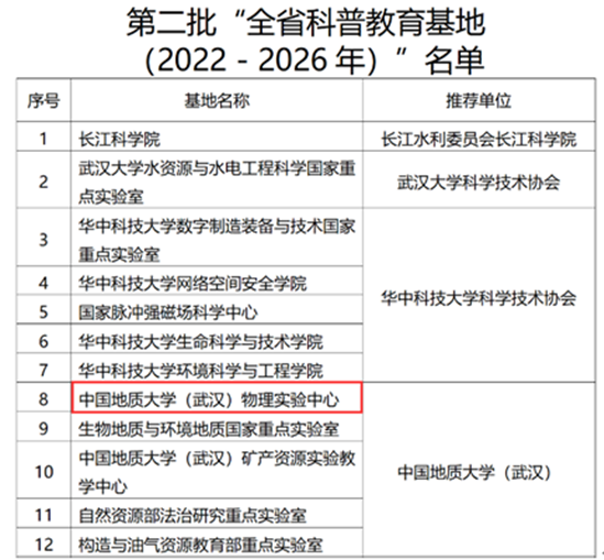 11月2日,湖北省科学技术协会公布了关于命名第二批“湖北省科普教育基地(2022—2026年度)”的通知,91网 物理实验中心成功入选。