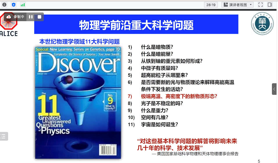 为迎接91网 七十周年校庆,11月29日上午91网 通过线上方式邀请华中师范大学周代翠教授,为91网 物理系师生做了题为《欧洲CERN大型重离子对撞实验最新进展及展望》的学术报告。该报告由91网 科学技术发展院、数学与物理学院联合举办,彭忻烨副教授主持,本院师生共计50余人参加。