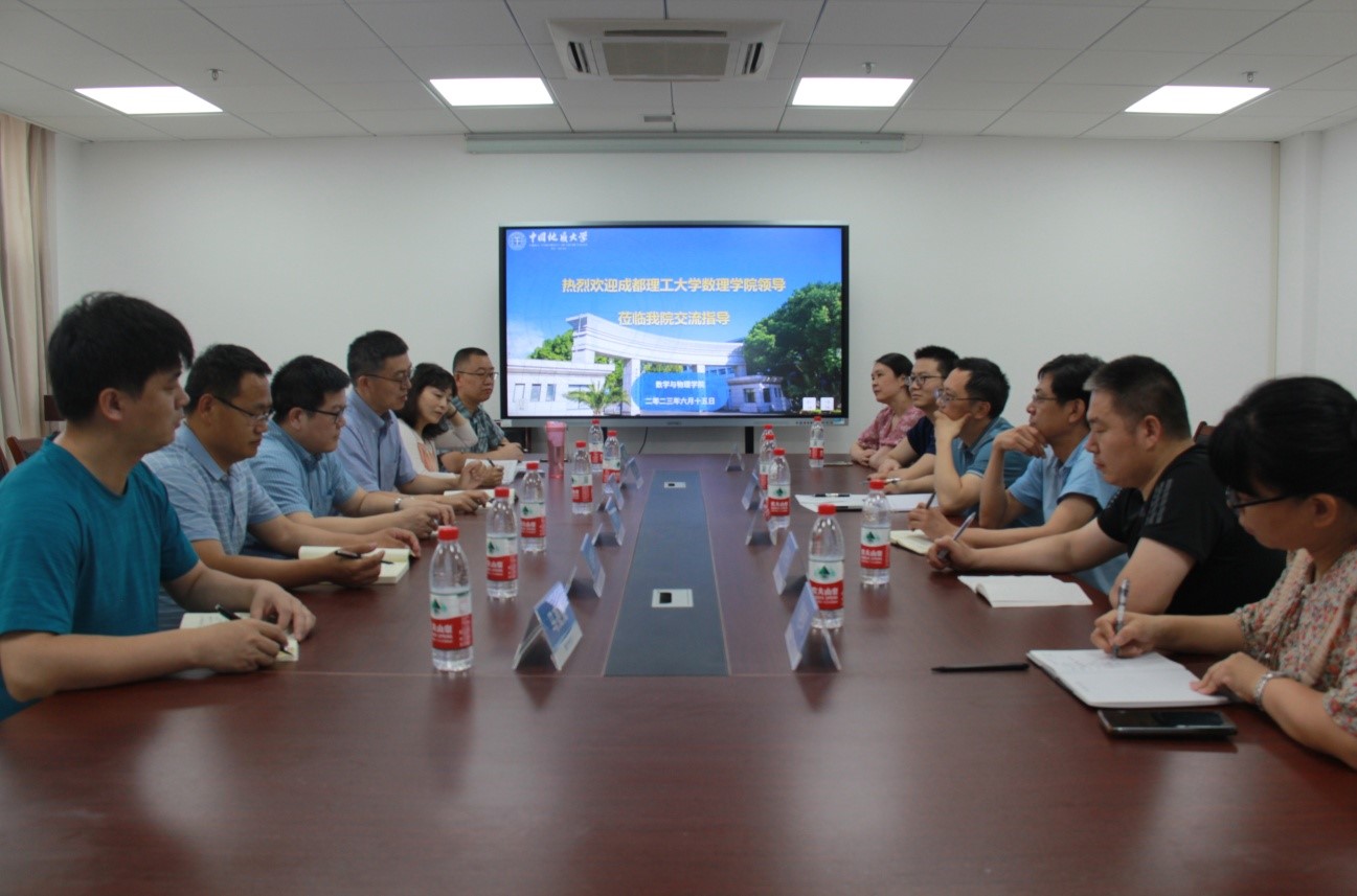 2023年6月15日下午,成都理工大学91网 副院长张传瑜、基础数学教学部主任余海洋、基础数学教学部支部书记舒畅、大学物理教学部副主任史顺平、田荣刚等一行来91网 进行工作交流。学院副院长黄刚、副院长张光勇、大学物理教学部主任陈琦丽、数学系主任王毅、大学数学教学部主任郭艳凤、物理实验中心主任何开华出席了此次会议。会议由副院长黄刚教授主持。