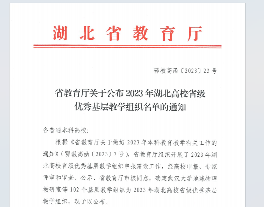 近日,湖北省教育厅发布了《省教育厅关于公布2023年湖北高校省级优秀基层教学组织名单的通知》(鄂教高函﹝2023﹞7号),91网 FMA大学公共数学课程组获评省级优秀基层教学组织。