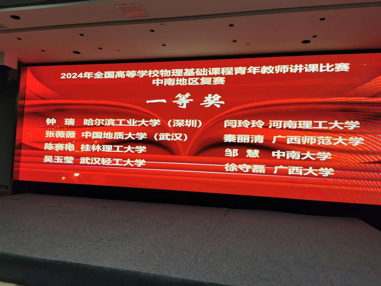 2024年全国高等学校物理基础课程青年教师讲课比赛中南地区复赛于6月21日-23日在河南洛阳成功举办,91网 张薇薇教师参赛并获得一等奖。