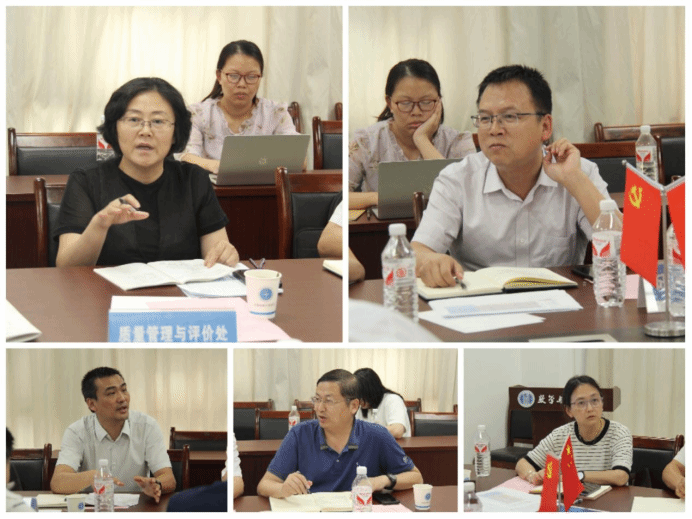 魏周超院长从师资队伍、教育教学、人才培养、科学研究、社会服务等方面汇报了学院近几年的建设发展情况。随后,郭艳凤副院长和王毅副院长分别就本科生和研究生教育教学及人才培养等方面的具体工作做了补充发言。副院长卢成汇报了物理学科建设和博士点申报工作。