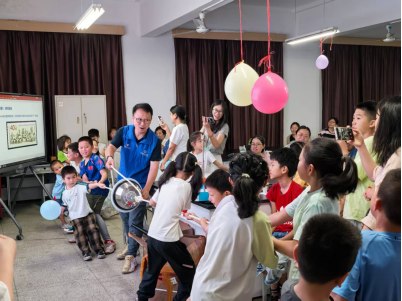 空气机关枪游戏更是将现场气氛推向高潮,孩子们操作装置,看着乒乓球随着高速流动的空气喷射而出,如天女散花般抛洒,欢呼声与惊叹声此起彼伏,大家在欢乐中感受着空气动力学的魅力。