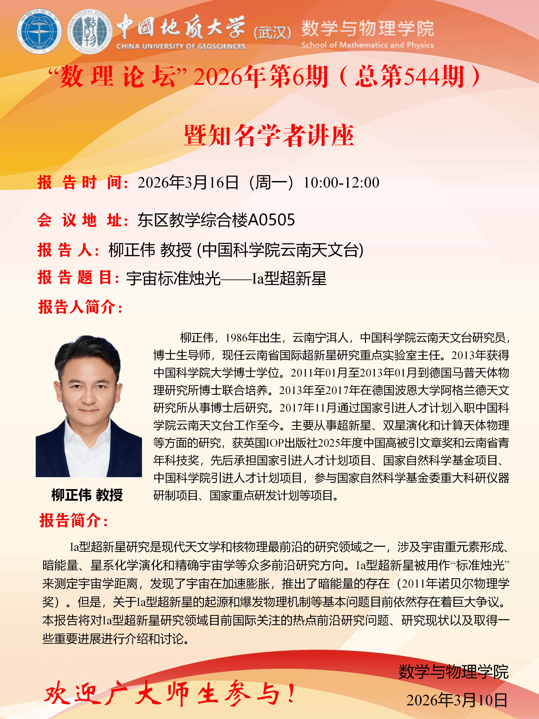 2026年3月16日柳正伟教授学术讲座:宇宙标准烛光—la型超新星