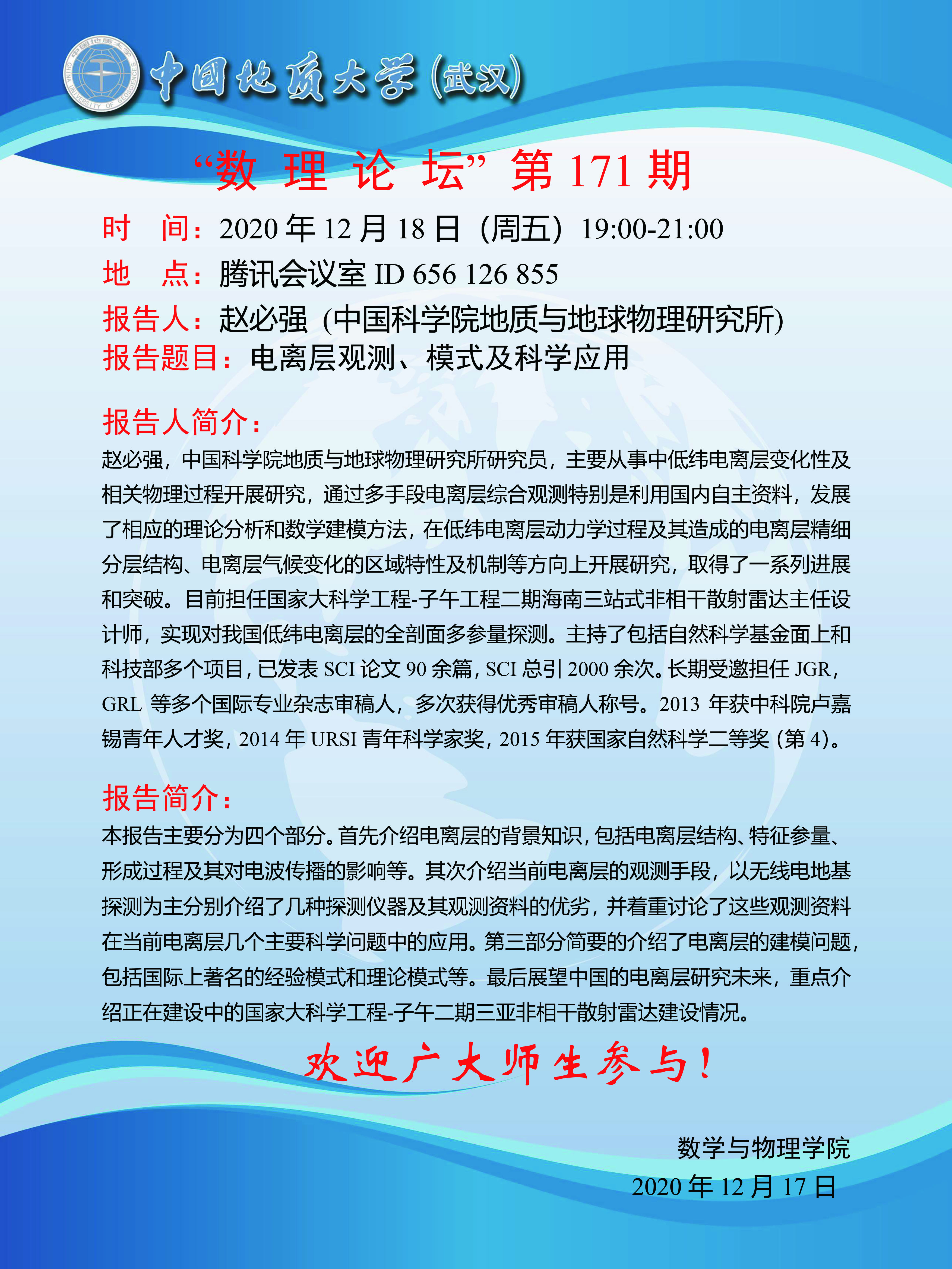 "数理论坛"第171期:电离层观测、模式及科学应用