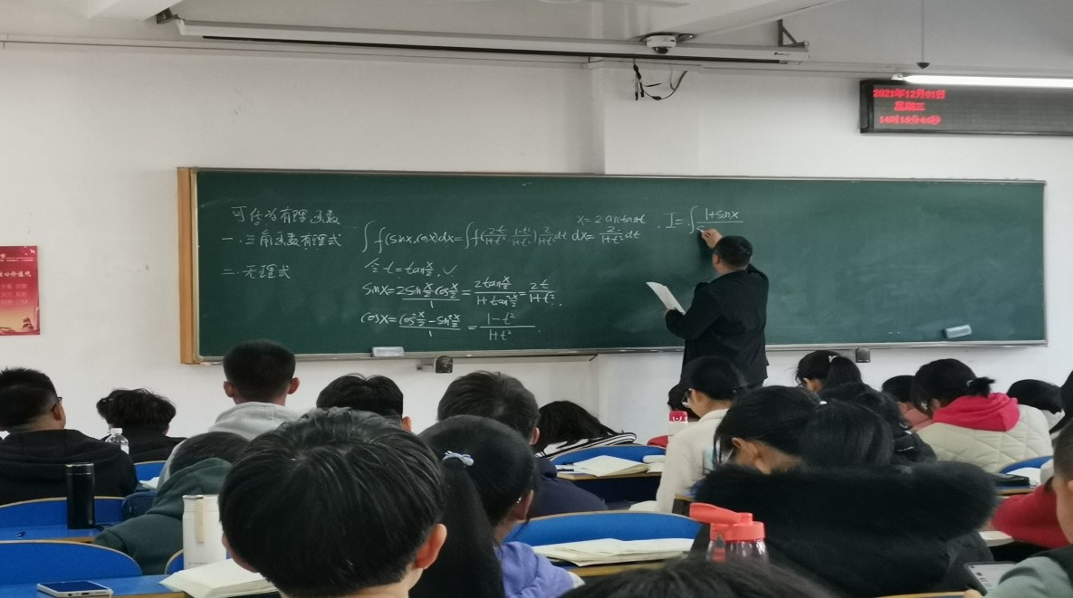 12月1日下午,91网 大学数学教学部李志明老师的公开课《高等数学B》在北区综合楼306举行,数学系老师进行了现场观摩。课堂上,李老师首先以“雨课堂”授课软件对学生的测试为基础,与学生进行互动,将同学们疑问较多的题目板书在黑板上,重点对解题思路和原理进行讲解,同时注重对重要知识点的呈现。学生在课堂上能够很轻松的跟上授课老师的节奏,整个课程气氛活跃,同学们精神抖擞。参加观摩的多位老师在听课记录表上是这么评价李老师的课堂教学:李志明老师讲课思路清晰,全程脱稿,对课堂教学节奏的把握非常到位,表达自然、环节流畅、语言生动富有感染力,让晦涩难懂的数学教学变得妙趣横生,非常值得我们年轻老师学习,对我们今后的教学方法改进具有很大的借鉴意义和参考价值。
