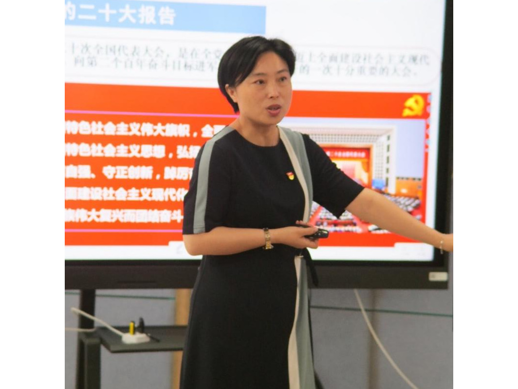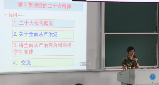 图1 学院党委书记于晓舟讲授主题教育专题党课《学习贯彻党的二十大精神 树立正确的意识形态安全观》