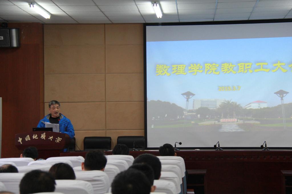 会上,吴太山重点介绍了学校2019年工作要点,以及学院今年的几项重点工作。学校今年的工作要点共分为坚持和加强党的全面领导、落实立德树人根本任务、全面提升学校综合竞争力、全面提升服务保障能力等四个部分22项任务。学院今年将以 “学科特区”和“数学学科中心”建设为重点,扎实推进数学学科和物理学科建设,切实加强数学、物理公共基础课程建设,大力推进人才队伍和干部队伍建设、教育教学、科学研究、实验室与平台建设、大学生管理、党建与思想政治工作等各项工作,努力为建设地球科学领域国际知名研究型大学做出新贡献,以“奋进之笔”庆祝中华人民共和国成立70周年。