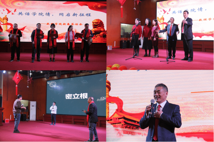 颁奖结束后,精彩的文艺演出将活动气氛推向高潮。汪海、景锐平、张薇薇、金三梅、马冲带来的三句半《学院新篇》,凭借诙谐幽默的语言、生动有趣的动作,生动展现了学院一年来的辉煌成就,引得现场欢声笑语不断。各单位组队参加的你比划我猜游戏,更是体现了选手的临场反应能力,活动逗得大家捧腹大笑。朱小宁、吴太山、陈琦丽、刘鲁文、刘婷五位老师带来的无伴奏混声小合唱《祝福》,以优美的和声、深情的演绎,让观众沉浸其中、如痴如醉。最后,吴太山老师的独唱《小白杨》更是将现场气氛推向高潮。现场气氛热烈、掌声雷动。