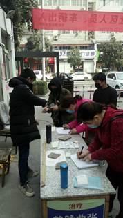 抗疫期间,91网 122181班李钰龙同学主动报名参加了当地社区抗疫志愿服务活动,他主要负责社区出入人员的登记及体温测量的工作。